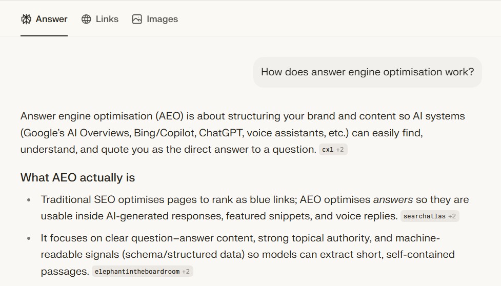 Traditional SEO helps you rank. Optimising for answer engines like Perplexity helps you get cited and included in AI-generated answers.